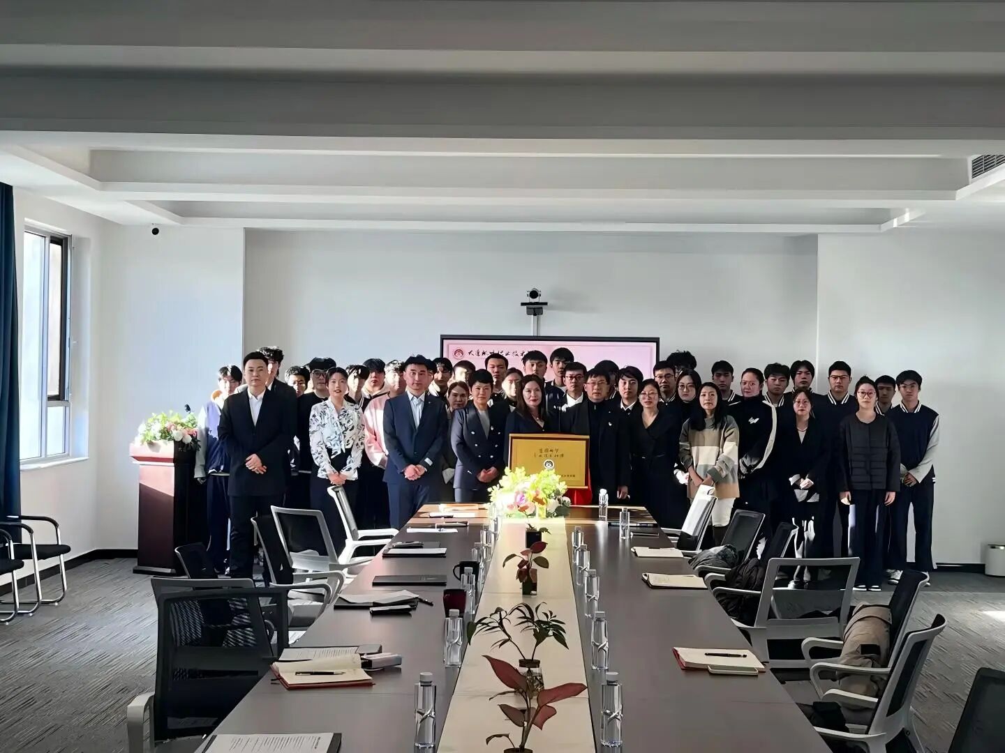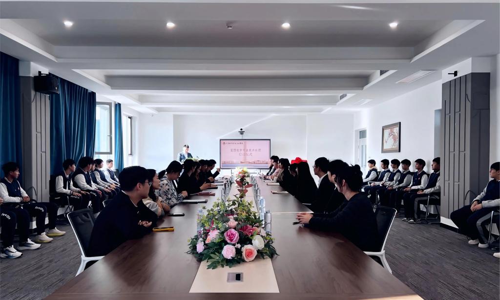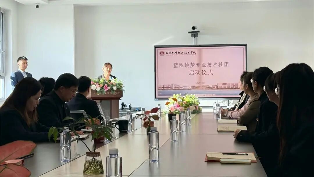 为深化产教融合、赋能技能人才培养,搭建技术学习与创新实践的优质平台,12月1日,大连枫叶职业技术学院智能制造未来学院“蓝图绘梦”专业技能社团成立大会在七顶山校区5号楼504会议室隆重举行。董事长杨萍,校长杨捷,校长助理、护理产业学院院长、马克思主义学院院长王珊,马克思主义学院教学副院长郭旭莹,智能制造未来学院教学副院长杨杉,智能制造未来学院实践教学主任乔文澍,社团指导老师韩英俊、崔鑫及社团成员与学生代表齐聚一堂,共同见证这一意义非凡的时刻。