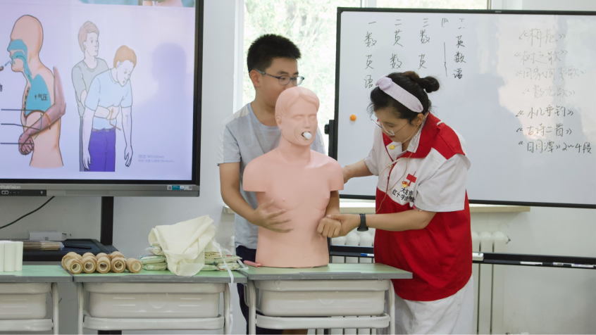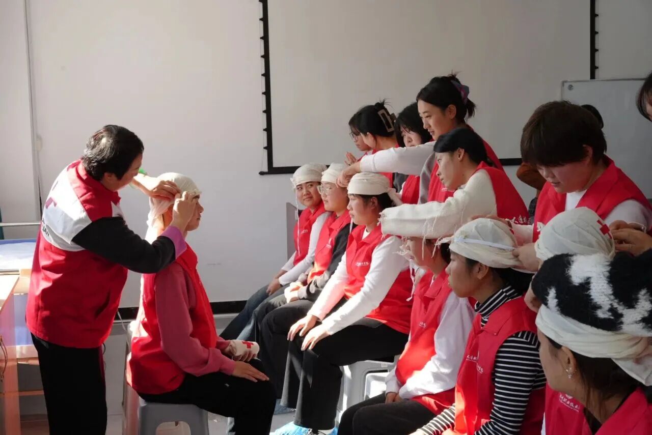 作为深耕康养护理领域的专业志愿服务队伍,服务队依托护理产业学院的专业师资与实训资源,将专业优势与公益服务深度融合。在急救知识普及方面,服务队组建专业宣讲团深入社区、校园开展“急救知识进万家”系列活动,通过理论讲解、模拟实操、案例分析等形式,系统普及心肺复苏、创伤包扎、气道梗阻急救等实用技能,累计覆盖群众及师生数千人次,有效提升了公众的应急自救互救能力。尤其是在“双百赋能践初心·红十字救护志愿先锋行”主题活动中,服务队成功组织百名教师完成初级救护员培训,考核通过率100%,为校园及社会应急救护储备了坚实力量。