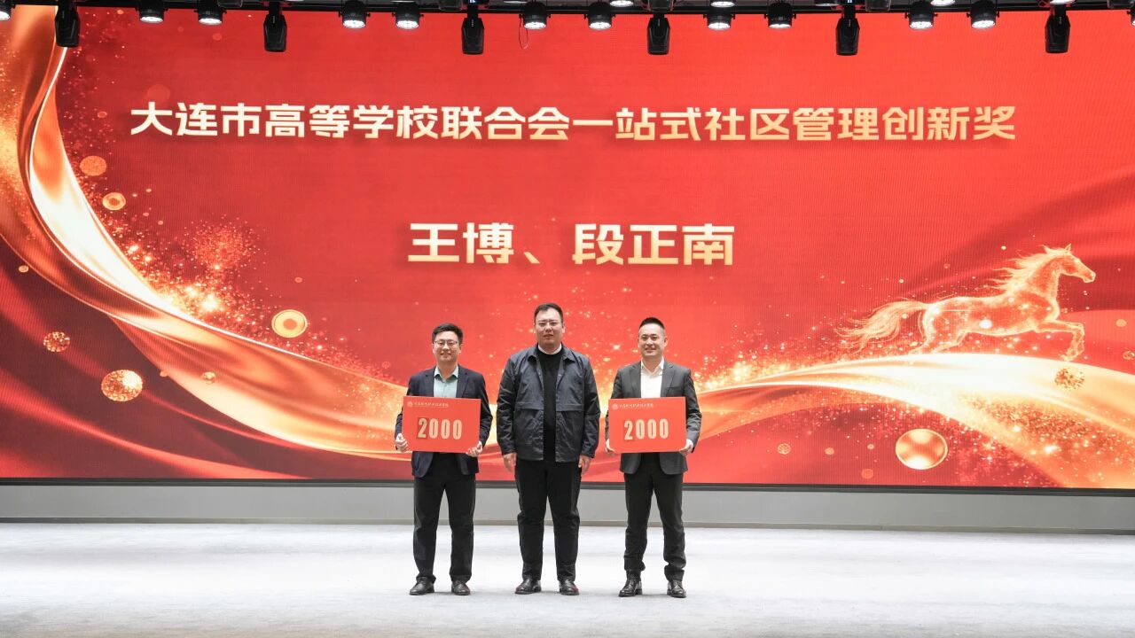 副校长高成林为大连市高等学校联合会一站式社区管理创新奖、最受欢迎辅导员奖项颁奖。