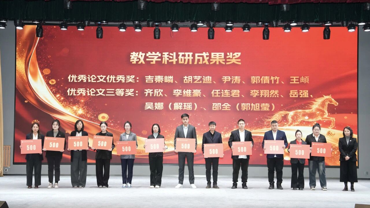 学院党委副书记金晓晖为教学科研成果优秀论文奖项颁奖。