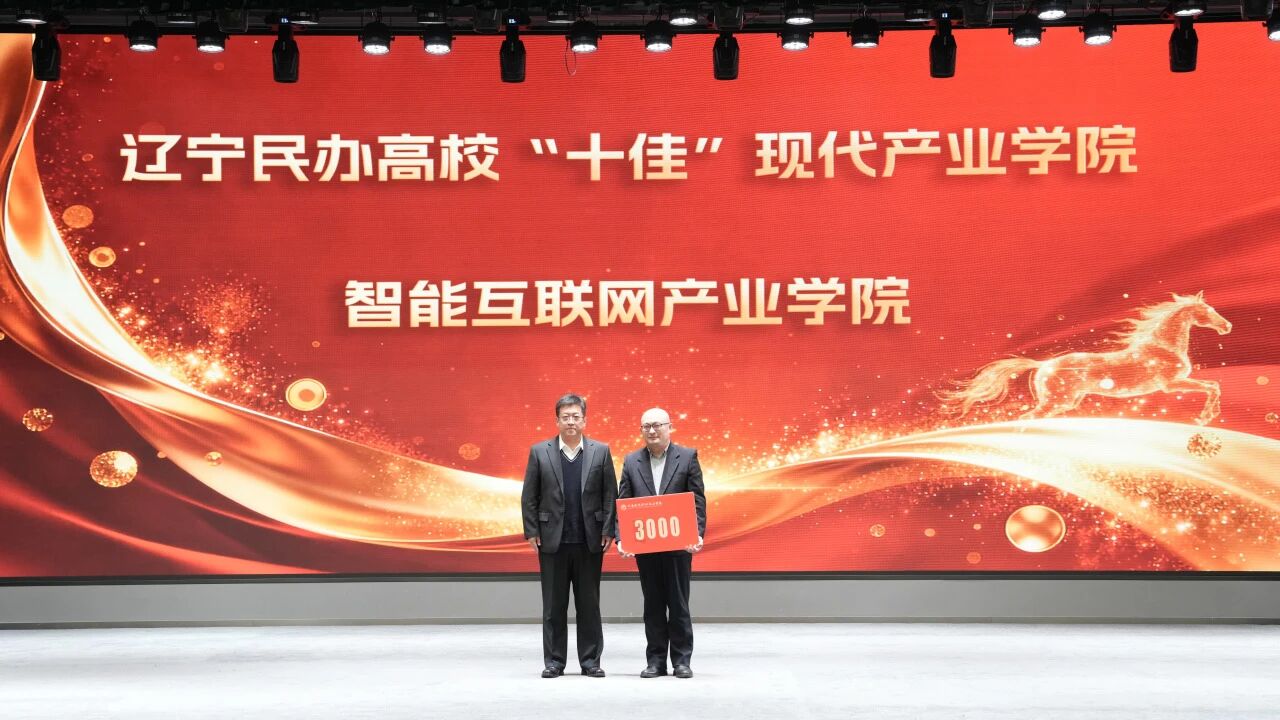 学院党委书记魏晓峰为辽宁民办高校“十佳”现代产业学院、课程建设项目、教材建设项目获奖单位奖项颁奖。