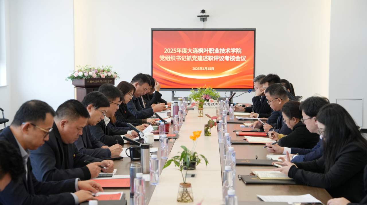 2026年1月15日,大连枫叶职业技术学院召开2025年度党组织书记抓党建述职评议考核会议。学院领导班子成员、党委委员、各党支部书记参加会议,学院党委副书记主持会议。