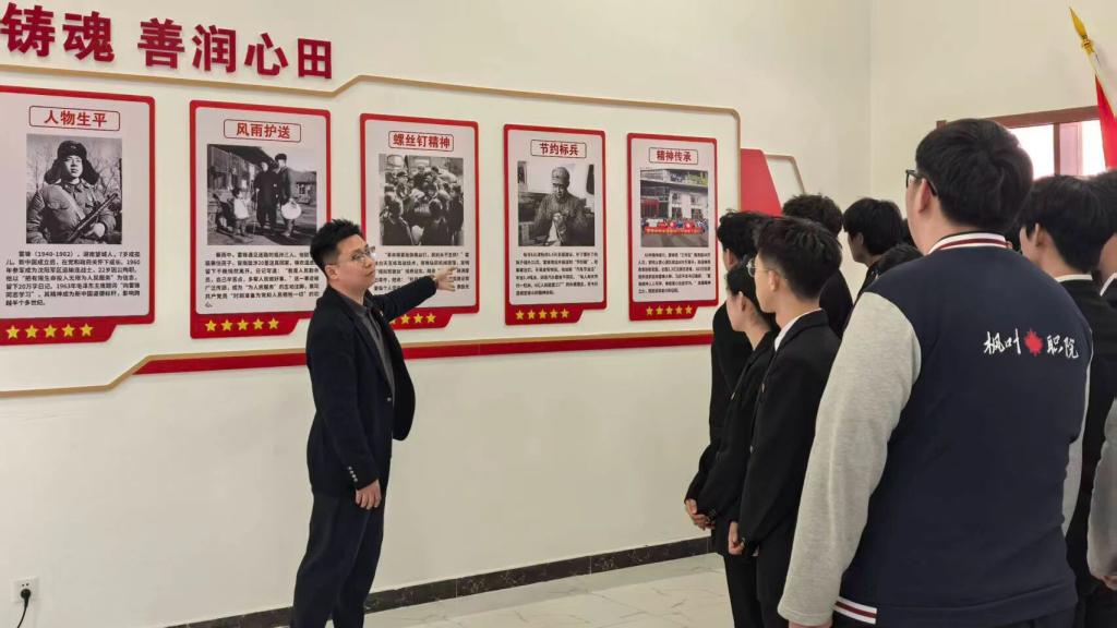 在入团仪式结束后,王博部长在学雷锋筑梦润心党建活动室向全体新发展团员讲授了一场生动的学习雷锋精神主题团课,在党建活动室为同学们细致讲解雷锋同志平凡而伟大的事迹,引导全体团员深刻领会忠诚,奉献,钻研的精神底色,进一步坚定入团初心。