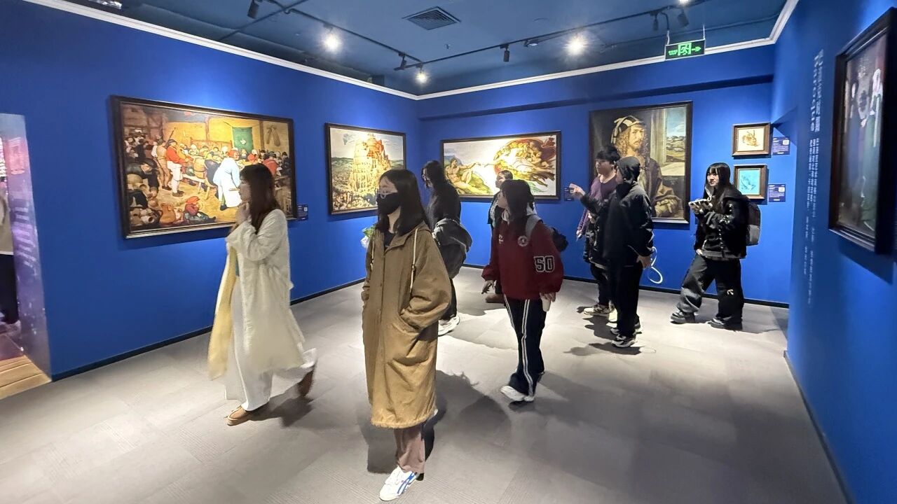 研学过程中,学子们带着课程问题边走、边看、边记、边议,主动将课堂所学与实景体验相结合。动漫制作技术专业学子细致观察艺术装置的动态视觉效果,结合数字影像制作课程内容记录创意灵感,尝试将梵高的艺术理念与现代动漫设计思维相融合;环境艺术设计专业学子聚焦艺术馆的空间打造、场景布置,围绕环境艺术设计原理展开小组讨论,分析不同艺术空间的设计逻辑,为后续设计实践积累实景经验。师生间的实时交流、同学间的思维碰撞,让研学现场成为生动的校外课堂,让专业知识在实景体验中变得具体可感,切实提升了学子们的专业认知与实践思考能力。
