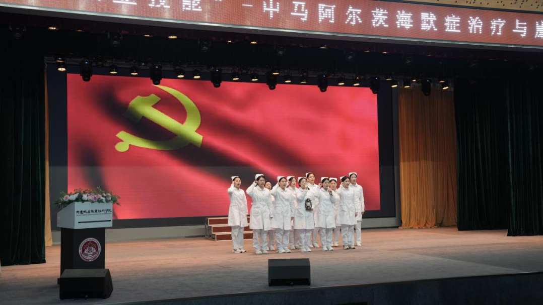 现场举行庄重的结业证书颁发仪式,杨捷校长为全体学员颁发证书;同期举行聘任仪式,王珊院长受聘为马来西亚启航计划中马职教合作特聘专家。在“逐梦同行·马来风采”环节,马来西亚学员展示特色文化并分享照护技能,互动热烈、温情满满。护理产业学院献上“医者仁心-白求恩之路”主题话剧,以深情演绎传递医者担当与国际合作精神,为仪式画上圆满句号。
