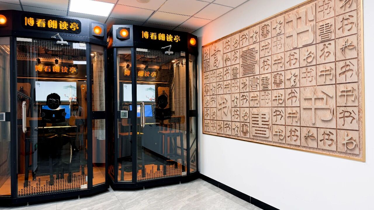 为提升师生阅读体验,本馆专门设置了环境静谧、布局合理的专属图书阅览区,为师生提供沉浸式阅读空间。同时配备7块电子阅览屏,实现“纸质藏书+数字资源”立体化服务,打破阅读时空限制,让优质资源触手可及;此外,分馆还增设专用朗读亭,提供独立私密的朗读空间,满足师生多元需求。