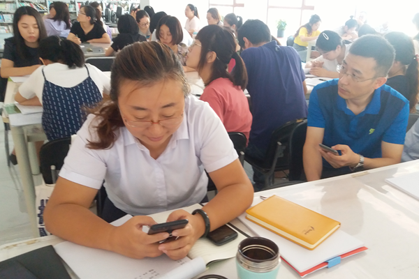 培训中陈博老师主要介绍了翻转教学平台的使用,通过手机端和电脑端为各位老师演示了如何利用现有课程资源来建课,课前如何完善课程信息、发布教学任务,课中如何进行签到、投票及抢答,课后如何进行课程数据的收集与整理,并与老师进行现场线上线下平台应用演练。参培教师反映翻转课堂的应用活跃课堂氛围、加强课上课下师生互动,利于课程教学诊改,为课程改革助力。