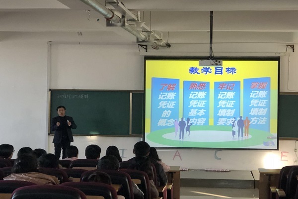 本次观摩课由王珊科长主持,三位老师相继进行展示。王婷婷老师讲授的《饭团在哪里》,采用了快乐式的课堂教学法,善用动漫人物做课堂教具,激发学生学习兴趣,通过本门课的学习,让学生能够使用日语询问场所在哪里;李德民教授讲授的《记账凭证填制》,将传统教学与现代教学相结合,采用讲练结合的教学方法,让学生熟练编制记账凭证;高静老师讲授的《人员选拔与任用—〈霍兰德职业兴趣量表〉》,模拟期末复习回课展示,情景体验+信息化教学(二维码现场测试),并将将信息化教学融入课堂,给我们耳目一新的感觉。