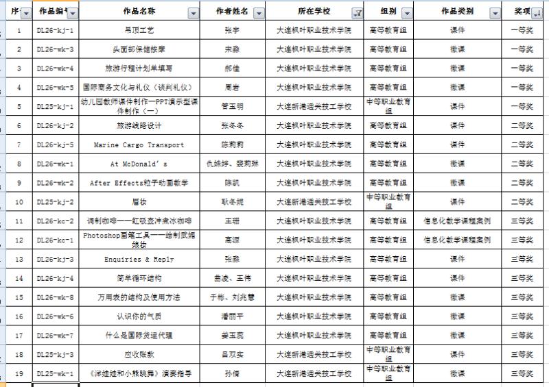 为了积极响应本次大赛,提高广大教师的教育教学信息化应用能力,各系部组织教师精心准备,并组织专家对参赛教师作品进行指导,通过系部推荐和学院筛选,我院上报25件作品(高等教育组15件,中等职业教育组10件),共荣获奖项19项,其中一等奖5项,二等奖5项,三等奖9项(高等教育组,一等奖4名,二等奖4名,三等奖7名;中等职业教育组,一等奖1名,二等奖1名,三等奖2名)。本次大赛中所获奖项为我院历届参赛之最。