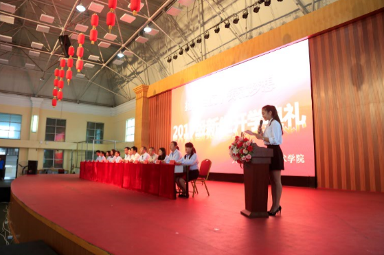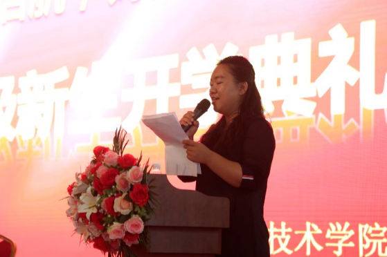 财经商贸系17市场营销班的连雅妮同学代表新生发言,她认为来到新的环境,面对新的起点,要珍惜时间,牢记使命,刻苦学习,努力将自己塑造成为适应现代社会需求的合格人才。同时秉承“诚信、勤奋、文明、自强”的校训,用求知的艰辛和实践的快乐来填充彼此生命的颜色,用飞扬的青春、跳动的热情来续写辉煌。
