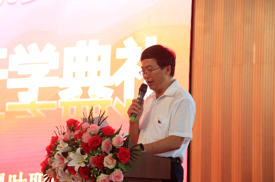 庄严的升旗仪式之后,闫博老师代表全体教师发言,她对新生的到来表示热烈的欢迎,并希望同学们学会感恩,感恩师长,感恩同学,感恩社会,希望同学们做到善求真,以学为本,志当存高远、心怀天下。