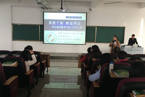 首先,由通关教研室周岩老师,针对《商品编码》的课程改革和各位教师做了分享。周岩老师分别从课程改革背景、课程改革设计创新(教学内容创新、教学方法和手段创新和考核方式创新)、课程改革效果、课程改革感悟四个方面对《商品编码》的课程创新做了详细介绍。周岩老师的课程改革全面,富有成效,在改革的过程中,周岩老师也找到了自己科研的着眼点和落脚点。