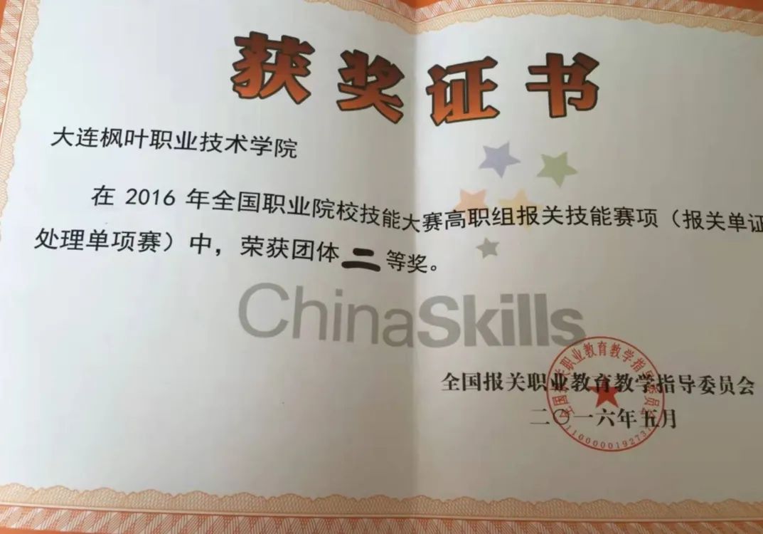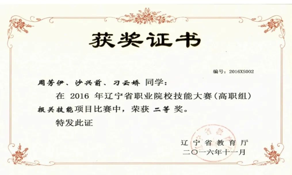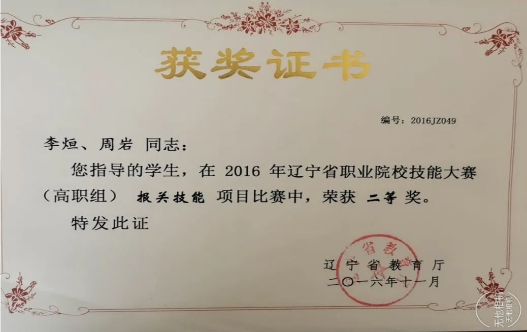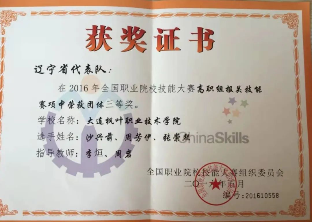 2016年辽宁省职业院校技能大赛(高职组) 报关技能项目比赛荣获二等奖