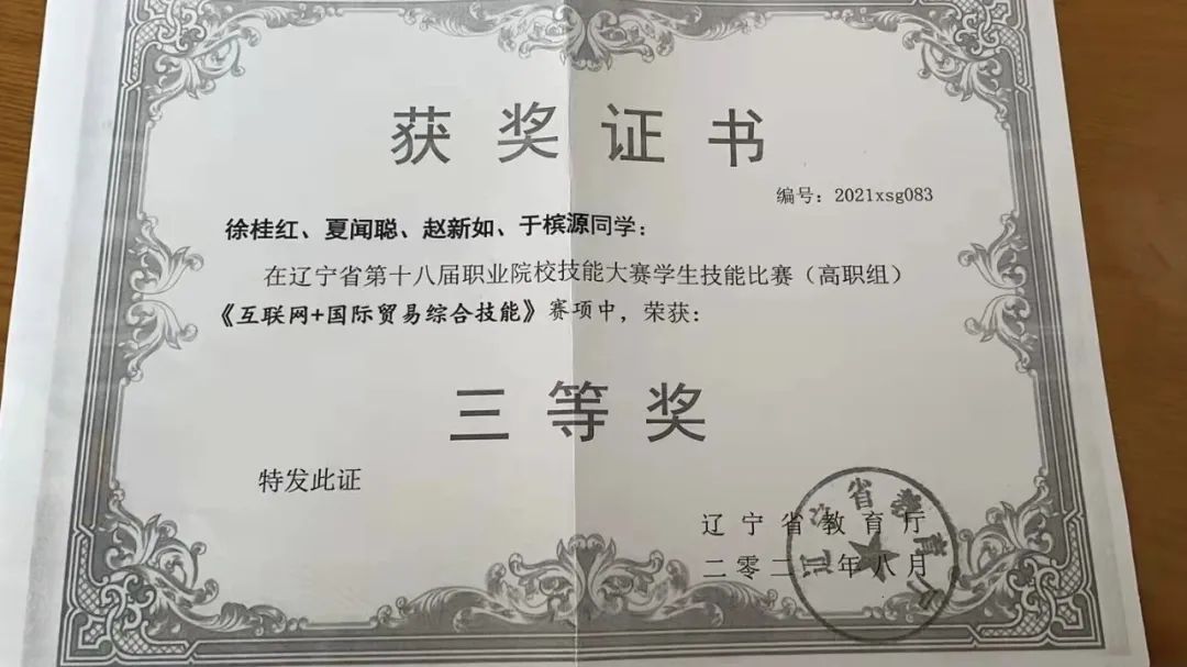 2021年辽宁省第十八届职业院校技能大赛学生技能比赛 “互联网+国际贸易综合技能”赛项中荣获三等奖