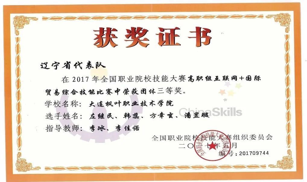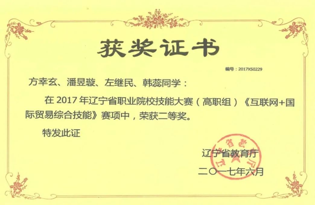 2017年辽宁省职业院校技能大赛(高职组) “互联网+国际贸易综合技能”赛项中荣获二等奖