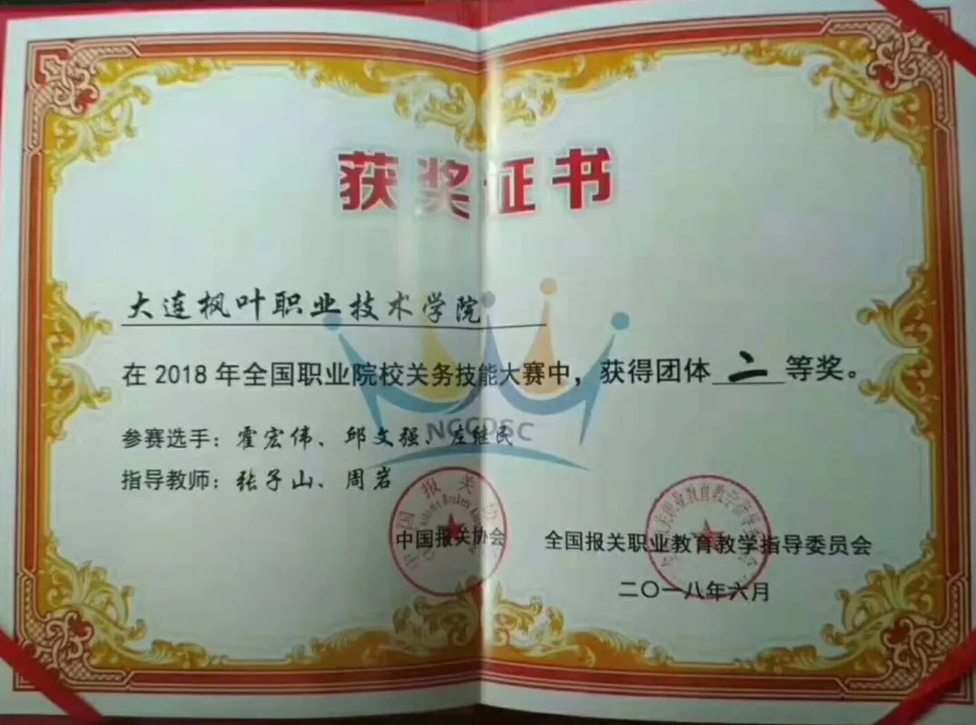 2018年全国职业院校关务技能大赛 荣获团队二等奖
