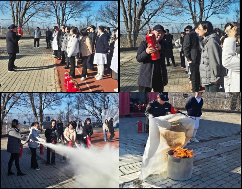 大连市消防救援支队金州消防救援大队钟警官保卫处吕运福老师分别在七顶山校区和大黑石校区针对学校的实际情况, 详细而深入地阐释了消防安全知识以及消防器材的恰当使用方式,并亲自示范了便携式灭火器及灭火毯的操作技巧。参与培训的教师们积极地参与互动, 普遍表示收获颇丰,不仅掌握了实用的消防技能,还深刻认识到了消防安全工作的重要性和紧迫性。