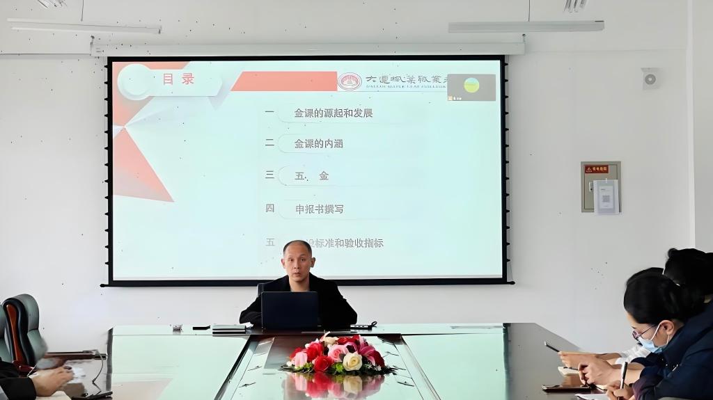 张宇副处长围绕金课建设“为什么建?怎样建?达到什么效果?”等问题深入解读了国家对高等教育课程建设的相关要求,强调了课程在人才培养过程中的核心地位;通过对课程建设标准和验收指标的分析,详细介绍了金课申报书的撰写要点。鼓励教师要秉持“以学生发展为中心”的理念,深刻理解金课建设“两性一度”的内涵,加强与企业的深度合作,发挥课程团队的合力,不断优化课程资源,将课程建设成果切实应用到教学实践当中。