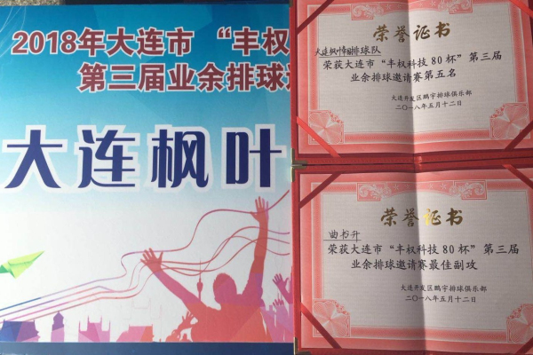 社团文化是校园文化的重要载体,是第二课堂重要的组成部分,排球社团作为学校最年轻的社团之一,自成立以来不断进取,努力拼搏,代表学院参加了2018年 大连市“丰权科技80杯”第三届业余排球赛,在15个团队中过五关斩六将取得了前五的好成绩,排球社社长曲书升也获得了最佳副攻的荣誉。