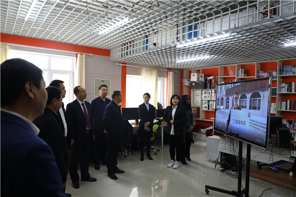 院长杨捷和各位校领导的引领下,与会领导和来宾参观了学院创业中心,并对学院的就业创业教育给予高度评价。