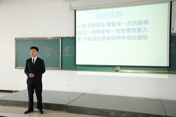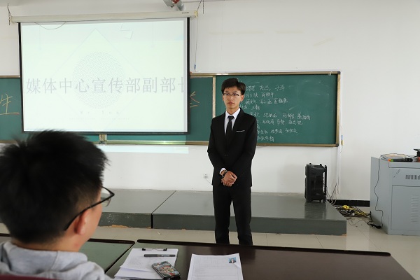 为传承校学生会文化,挖掘优秀人才,给德才兼备的学生一个更好锻炼自己的平台,校团委学生处于2019年5月10日中午11:30在财经商贸系东多媒体教室举办新一届学生会干部竞聘仪式。团委学生处王博、张善文、孟欣、张紫雯老师莅临竞聘现场,校学生会全体成员参会,大会由校学生会主席孙悦主持。