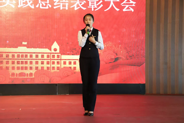 表彰大会在雄壮的国歌声中拉开帷幕,18电商2徐佳宁、18软件2谷典、18高铁4柳惠分别代表优秀实践个人做汇报,他们分享了自己在实践中的经历和感受。学院领导为社会实践优秀个人颁奖,同学们不仅为榜样的力量呐喊,更为自己的坚强鼓掌。18电商许朕宁、18高铁2周学强代表优秀班级做汇报,会上,为社会实践优秀班级和优秀指导教师颁奖。本次社会实践无论是团队还是个人都取得了丰硕的成果,在院领导的亲切关怀、各部门的紧密配合、各系的精心组织、各位指导老师的努力和同学们的广泛参与下,在企业的大力支持和帮助下,学院社会实践工作踏实有效的开展。书记申秀梅代表学院讲话并对同学们寄予了殷切的希望。