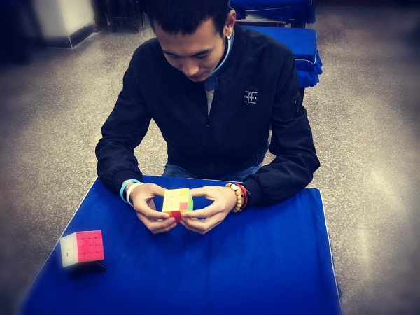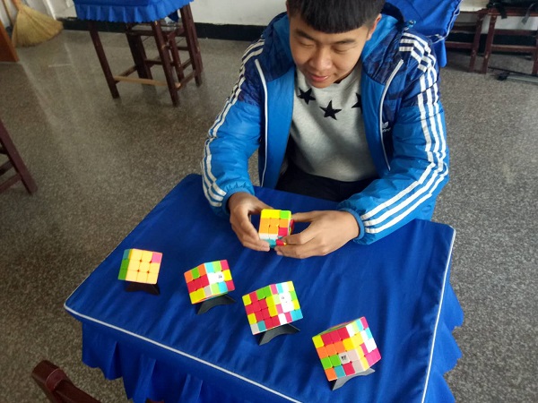 15日中午,同学们期盼已久的魔方挑战大赛开赛了。随着裁判老师的一声令下,只见,同学们的双手飞速旋转着魔方,小小的魔方在不停地旋转,原本杂乱的魔方不一会儿就已经成型,其速度令人眼花缭乱,围观的同学们不时地发出阵阵赞叹。最终16级工程造价班的刘森同学以36.52秒还原了三阶魔方;以2分55.58秒还原了四阶的惊人成绩在本次魔方大赛中脱颖而出,夺得本次大赛的冠军。刘森同学在赛后分享比赛感受时说:他原本对三阶魔方一窍不通,第一次还原魔方是看着网上教程用了一个多小时才完成的,练习魔方还原,让他学会了专注做一件事,享受到挑战成功的乐趣。