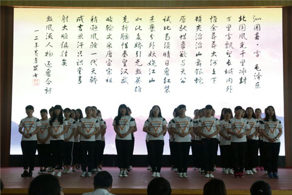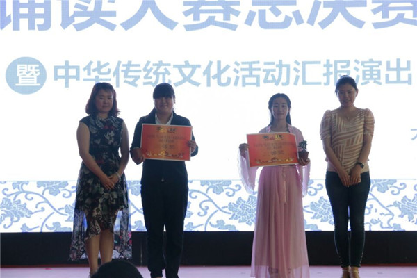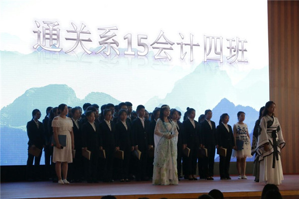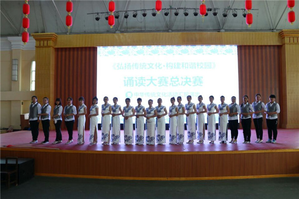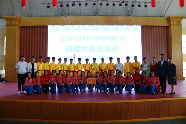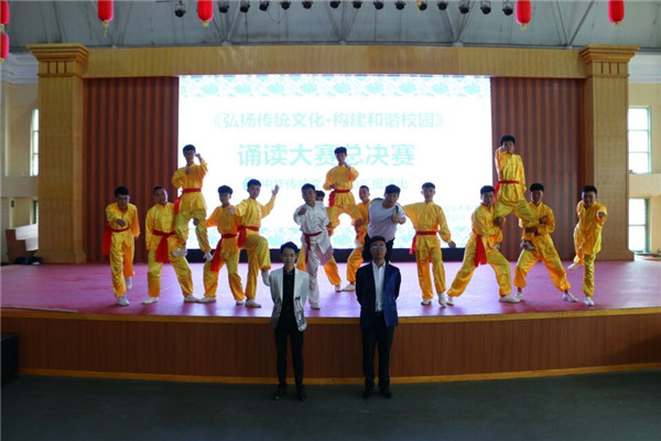 大赛现场各班级的表演震撼人心,15邮轮班的《满江红》让我们感受到岳飞精忠报国、一腔热血的英雄气概;15幼师的《沁园春·雪》让我们感受到一代伟人的风采;15船舶班的同学用他们满腔的热情朗诵了《少年中国说》;15老服的《养生十六宜》让我们了解了中医养生和茶道文化;15会计1 2班的《水调歌头》寄寓着词人的人生理想,承载着世间诉不尽的豪情和思念;15报货4班的诠释了“大学”的智慧结晶,意深理透,志远境高;15会计4的弟子规诵读擦亮了我们的眼睛,点燃了我们的智慧;15市场和15综合班的精彩诵读表演融入了中华武术和手语表演。最后,团委组织部的舞蹈 《鸿雁》使活动进入尾声。经过评委老师公平公开公正的审核,15市场、15综合班获得了本次总决赛的第一名,15邮轮班、15报货4班获得第二名,15老年服务班、15会计1、2班获得第三名,15会计4班、15幼师班、15船舶班获得了大赛优秀奖。