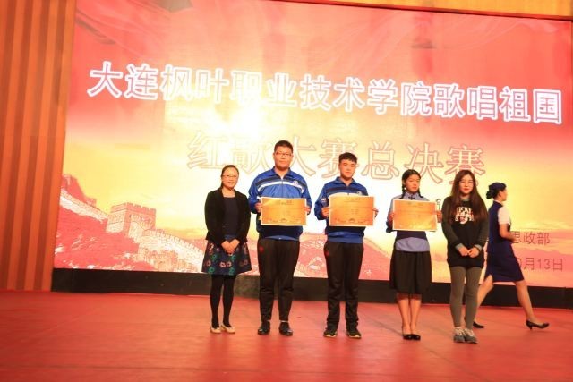 清风拂柳、温阳普照,激情澎湃、盛世欢腾。在这播种希望、描绘未来的季节里,我们又迎来了繁花似锦的红色十月——祖国成立67周年的伟大日子。在这令人难忘的时刻,我们敞开心扉,释放激情,唱响红色经典!我们纵情放歌,歌唱祖国,抒发时代豪情!大连枫叶职业技术学院歌唱祖国红歌大赛总决赛于2016年10月13日下午14:20在综合馆拉开帷幕。到场的各位评委嘉宾有:学生处处长助理吕运福,通关系学生管理主任徐凤龙,团委书记成名,网络中心主任薛飞,招生工作处梁陆宇,思政部教师潘丽萍、于杨,教务处薛杰,培训中心王琳。