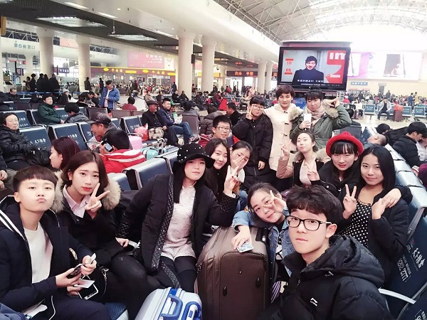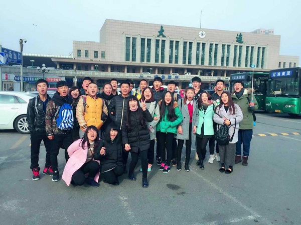 学院领导和老师在火车站护送学生