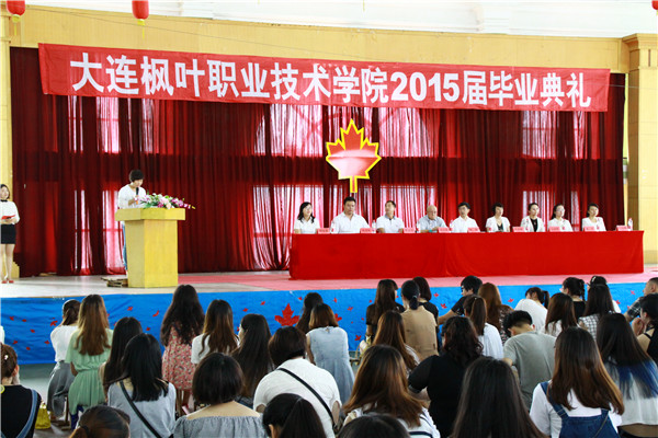 弹指一挥间,2012年的7月18日还是昨天的印记,从三年前2012级的同学们迈入大连枫叶职业技术学院的那一刻,便注定了会有今天这样一个特殊的日子。2015年7月18日上午10:00,在学院综合馆隆重举行大连枫叶职业技术学院2015届毕业典礼,参加典礼的各位领导和嘉宾有:大连枫叶职业技术学院院长杨捷、学院顾问张永春、党支部书记 副院长申秀梅、副院长解建国、副院长金晓晖、学生处处长高成林、教务处处长康丹、通关系主任林晓慧、船舶与珠宝系主任王晓琳,典礼由团委书记成名主持,参加毕业典礼的还有各院系教师代表,毕业生以及毕业生家长代表。