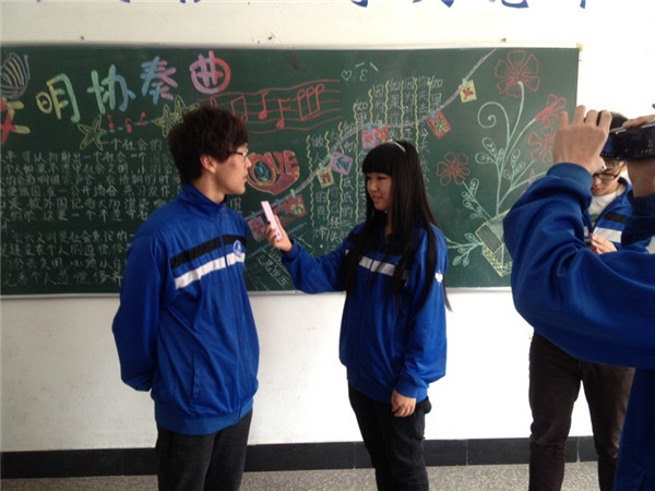 最后小记者还采访了一位上课的老师,老师说:“很多同学缺乏自觉性,静心课堂让他们交出了手机,渐渐地由被迫转为自愿,大大的提高了这些同学的听课效率。”
