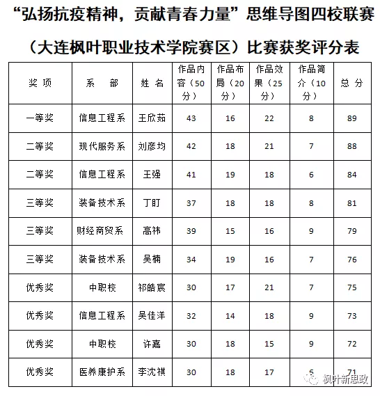 人无精神则不立,国无精神则不强。为弘扬伟大的抗疫精神,进一步提升广大青年对防控疫情的自觉意识,增强坚决打赢疫情防控阻击战的信心和决心,促进广大师生积极行动起来,从抗疫精神中汲取前行力量,自觉担负起社会责任,戮力同心,继续发扬历史主动精神,乘势而上,砥砺前行,沈阳农业大学、辽阳职业技术学院、大连枫叶职业技术学院、辽宁石化职业技术学院联合举办“弘扬抗疫精神,贡献青春力量”思维导图大赛,枫叶团委书记王博、枫叶知行社指导教师姚琦雪为枫叶赛区评委,比赛面向全体在校生开展。
