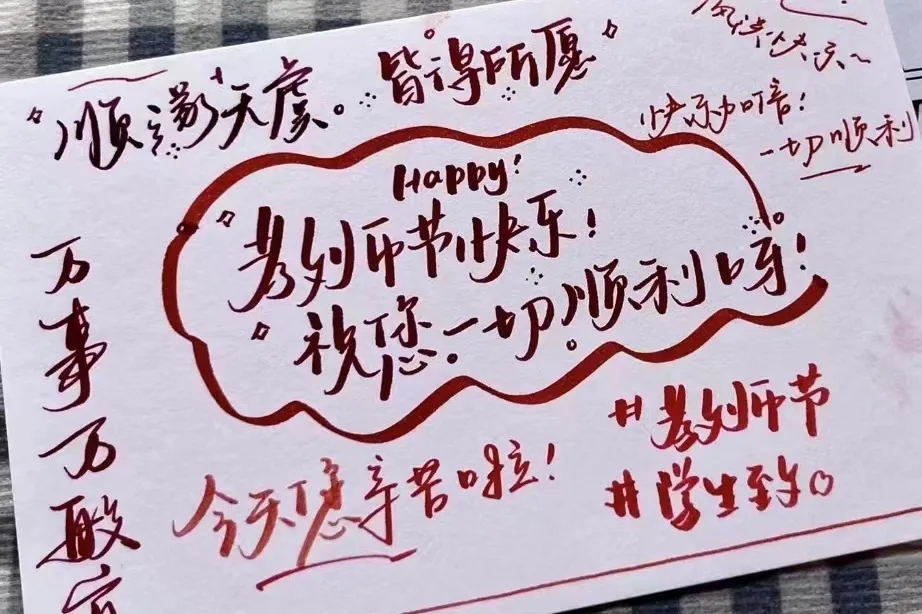 九月的微风低吟着您教书育人的故事,初秋的细雨映衬了您忙碌勤恳的身影,今天是中国第38个教师节,祝老师们节日快乐!在这个特殊的节日里,是否还记得他们的辛勤,记得他们的关爱,记得他们那些经典的口头禅,记得他们的精彩和光芒。一曲赞歌虽谱不尽您的华丽篇章,一支粉笔却绘就了您的人生轨迹,三万桃李报答不了您的如山恩情,三千青丝染霜却谱写出您的精彩人生。