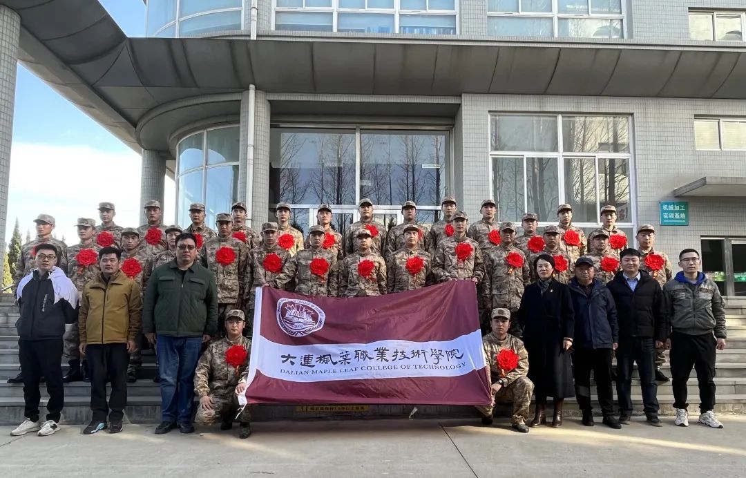 2023年3月15日下午, 我院党委书记申秀梅、学生处/保卫处处长高成林等一行8人走进甘井子区役前训练基地,看望并慰问我院参加春季役前训练的新兵学生。