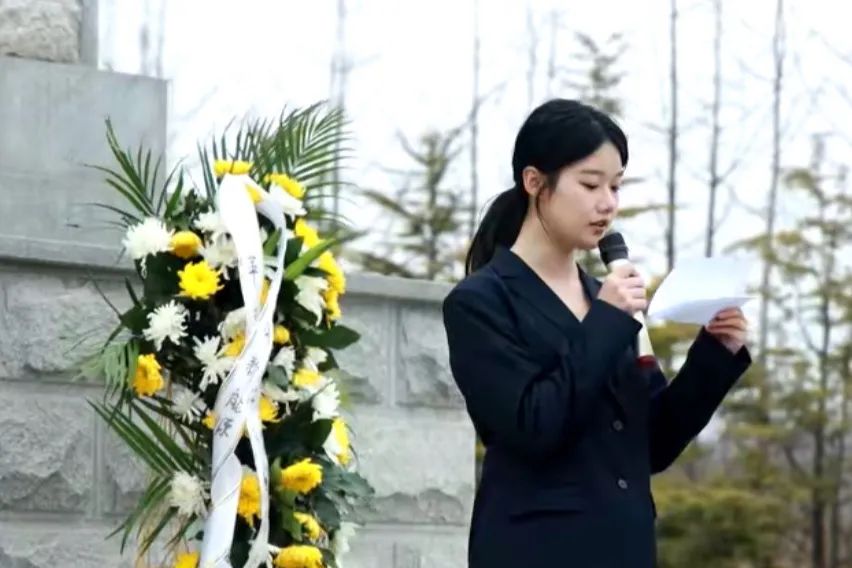 经过英雄亭,走到墓碑旁,师生们向每位先烈敬献菊花,俯身轻拭墓碑上的灰尘,铭记他们的名字,以最简朴而虔诚的方式,九十度鞠躬,向英勇牺牲的先烈们表达深切的怀念和崇高的敬意。