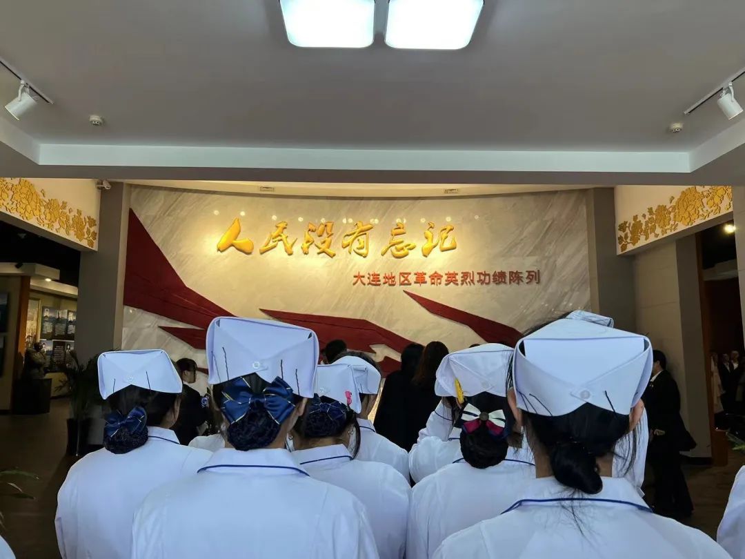 云儿轻轻,松涛阵阵,当师生们站在大连市烈士纪念馆时,被那“人民没有忘记”的六字主题吸引,肃然起敬,缅怀先烈。随着工作人员的讲解引领,让大家一步步走进革命先烈的事迹中,感受着当时的艰辛与恢宏的战斗历程。师生们默默紧随讲解员的脚步,认真聆听英雄故事。今日的阳光和煦,鲜艳的红旗随风飘荡,那正是英雄们用鲜血来奠基,用生命来奏响的赞歌。
