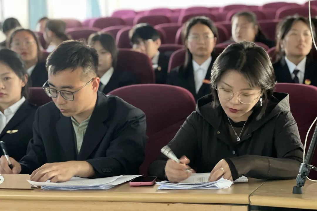 大连枫叶职业技术学院2022级校学生会换届大会于5月23日下午17:00在2号教学楼西多媒体进行,团委刘博老师、杨婧老师,执行主席赵佳博、部长团以及22级校学生会竞选候选人、22级学生代表出席大会。