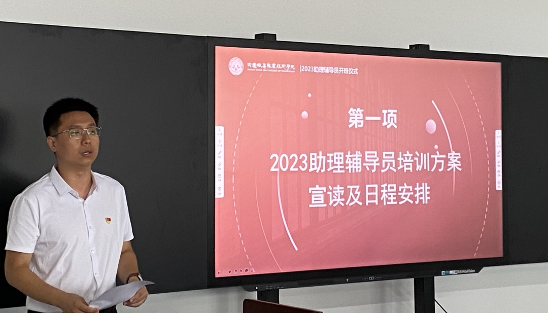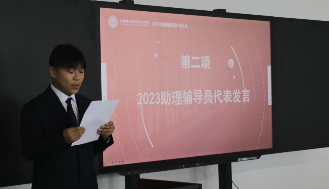 为全面提升青年学生干部的综合素质水平,加强助理辅导员间相互交流,7月13日,我院在4号教学楼409教室开展了2023年助理辅导员培训暨青马培训班开营仪式,学生处/保卫处处长高成林、大连新港通关技工学校副校长徐凤龙、校团委书记王博、以及51名学生干部、助理辅导员候选人参加开班仪式,校团委干事杨婧主持仪式。