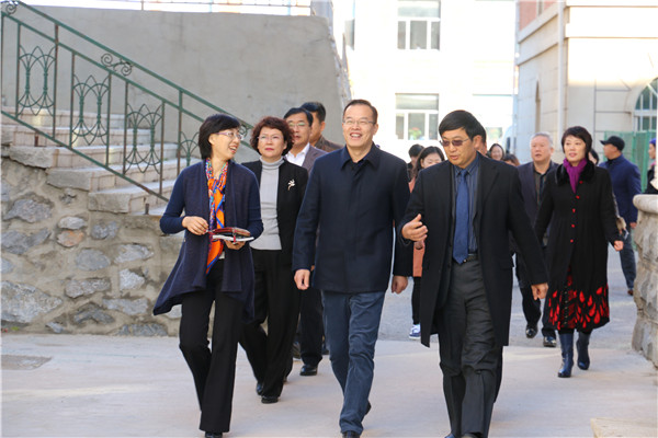 申秀梅副院长(右一)为来访领导介绍学校发展历程