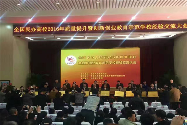 2016年11月10日,全国民办高校2016年质量提升年暨创新创业示范校经验交流会在山东英才学院成功举行。教育部、山东省政府、山东省教育厅、中国民办教育协会、中国民办教育协会高专委等机关领导出席会议并作了重要讲话。来自全国23个省市、自治区100余所高校、科研院所、教育机构的200余位代表参加会议。