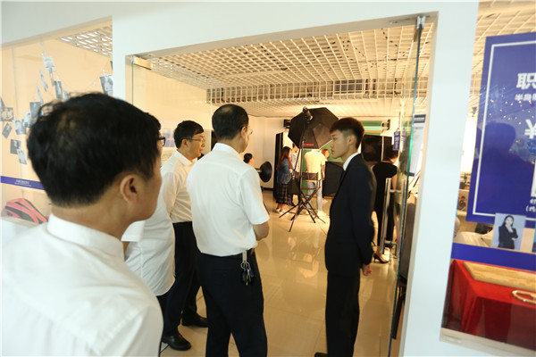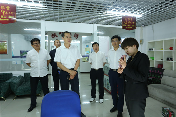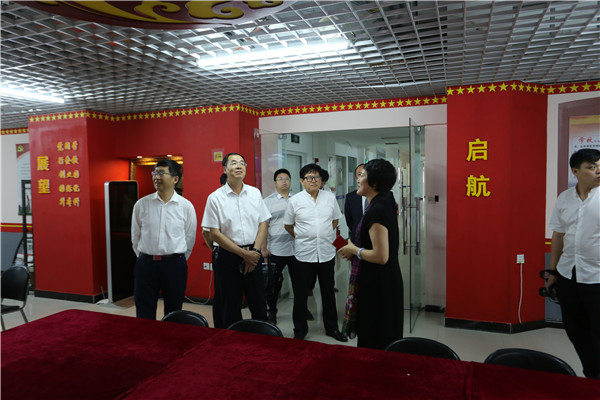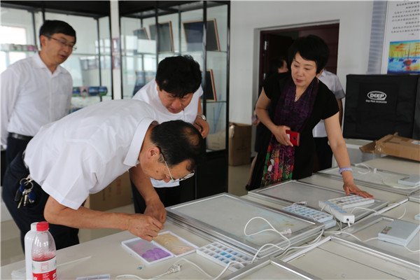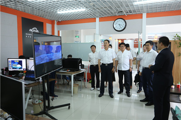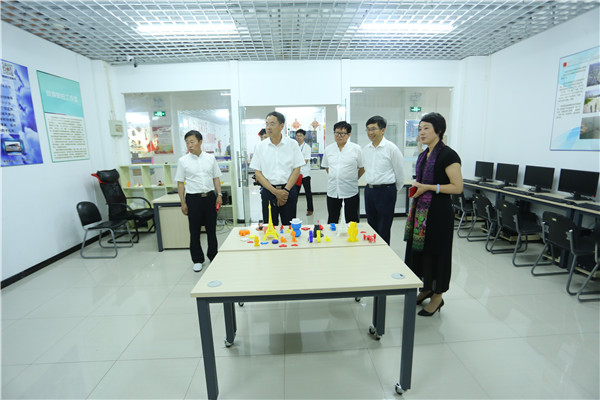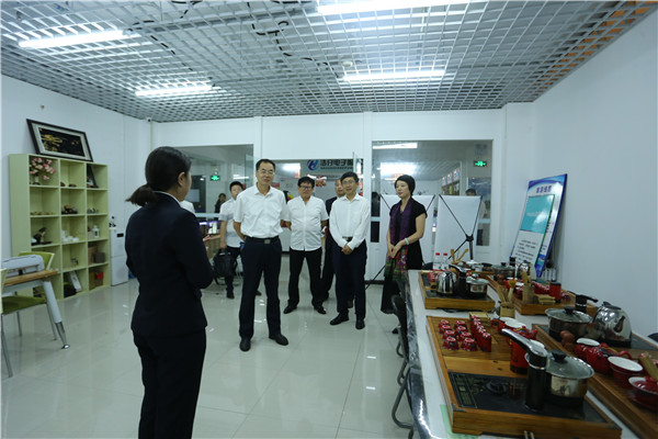 领导们参观了大学生创业中心和疯狂的沙子创客工作室,就我校创新创业基地建设情况及如何与朝阳市辖区内的孵化基地对接问题,展开深入探讨。