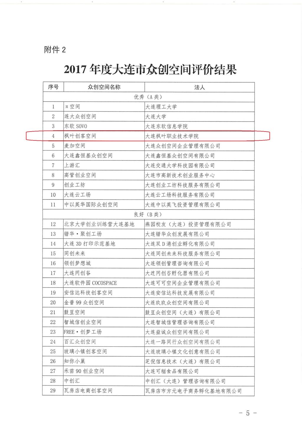 热烈祝贺枫叶创客空间在2017年度大连市众创空间评价中荣获优秀(A类)。