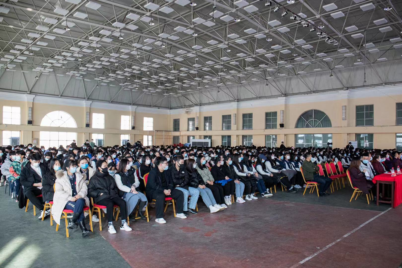 辽宁省大学生就业创业中心副主任李颖,就业创业指导部部长陈洪龙、副部长方园,大连市高校毕业生就业服务中心副主任申宏涛、大连市高校毕业生就业服务中心汪淑华,大连枫叶职业技术学院董事长、院长杨捷,党委书记申秀梅,副院长解建国,学生处长高成林,教务处长张冬冬,大连新港通关技工学校副校长徐凤龙以及600余名师生代表参会,会议由创业就业办主任张晓洁主持。