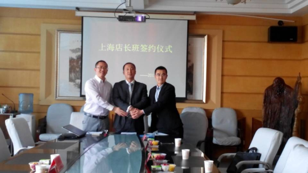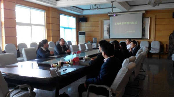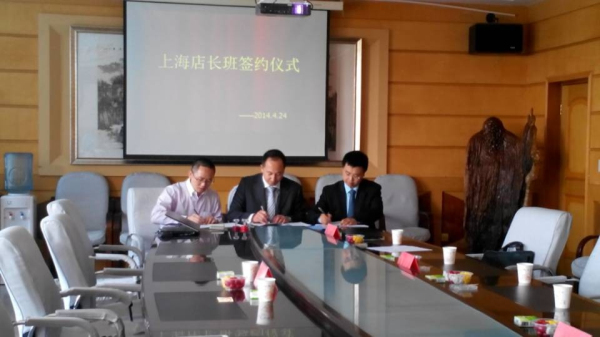 2014年4月24日15:00,在一号教学楼会议室,上海店长班洽谈会暨签约仪式正式开始。出席会议的有上海伊秀餐饮管理有限公司代表 ,原微集团代表,上海莱特浩斯公司代表以及学院领导。学院解院长向企业介绍了教学管理、学生管理及就业情况,企业展示了企业文化、管理理念以及培养方式,洽谈结束后我校与上海各公司完成了签约,本次签约为我校学生就业增加了一份保障和更多的选择机会。