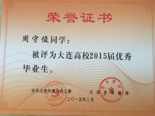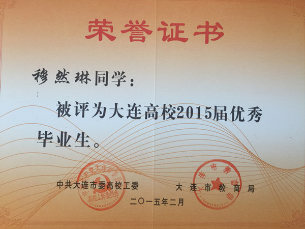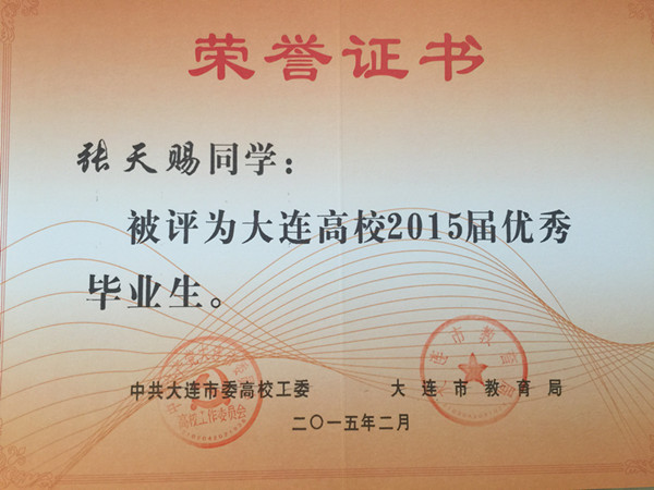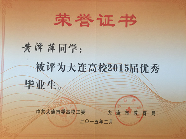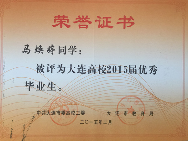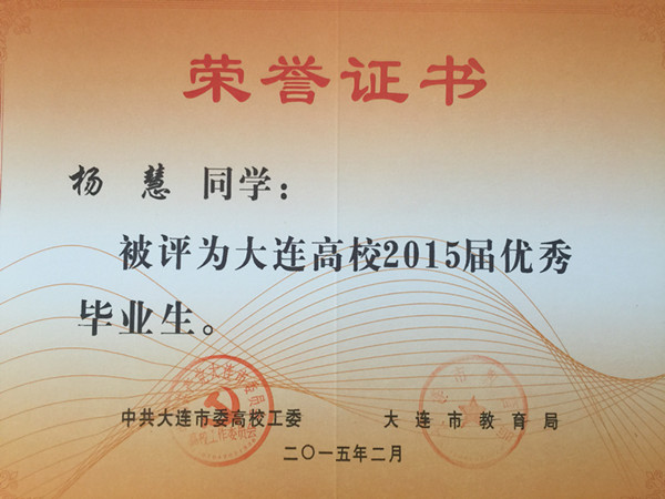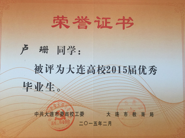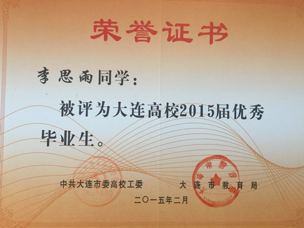 根据《大连市人民政府办公厅关于进一步做好普通高等学校全日制毕业生就业创业工作的意见》(大政办发[2014]54号)文件精神,我院报关与国际货运专业穆然琳、杨松、马焕婷、姜毅、马玉丰、杨慧、王琳,会计专业卢珊,船舶工程技术专业张天赐、周守俊,应用日语专业张潇,国际邮轮乘务专业黄泽萍,宝石鉴定与加工技术专业李思雨13名同学被评为大连高校2015届优秀毕业生,在此向获此殊荣的同学表示祝贺!希望全体同学以他们为榜样,刻苦学习,勤奋努力,严格要求自己,为社会的发展贡献自己的力量!愿他们在今后的职业生涯中再创佳绩。