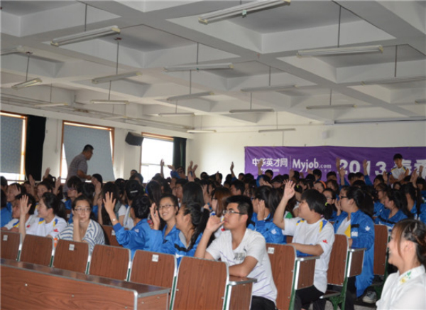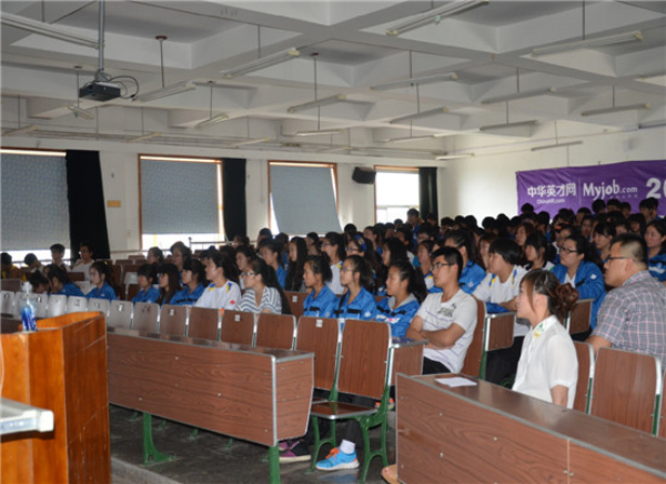 张总监首先通过自己的履历为大家讲述了如何实现自我突破,只要你想做,没有什么不可能。接着是一个岗位测试——走迷宫,简单的测试为学生对自己的职业方向定位提供了参考依据,增加了同学们的自信心,坚定了自己的目标。又从当今毕业生的人数、求职者学历、大学生薪酬期望值等方面帮助大家摆正就业心态,并建议大家择业要秉承大型企业看文化,中性企业看行业,小型企业看老板的原则。张总监还耐心地从社交礼仪方面教大家如何打造工作魅力,如何在最短的时间内得知面试官的期望。讲座最后张总监带来了一个职位,招募一名学生作为中华英才网的校园大使,希望我们的学生可以面试成功。