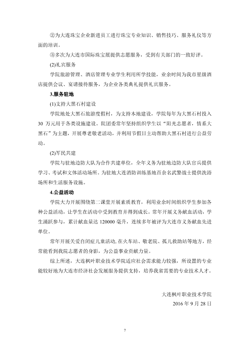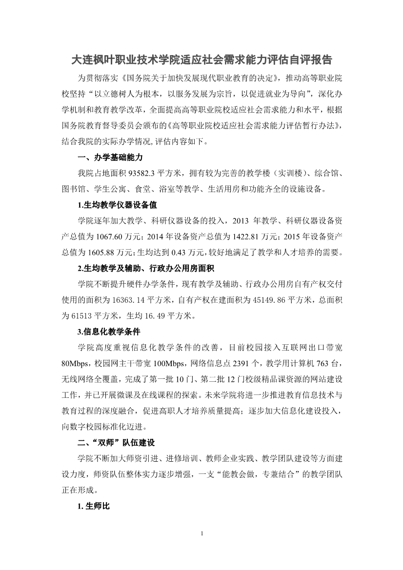 大连枫叶职业技术学院适应社会需求能力评估自评报告