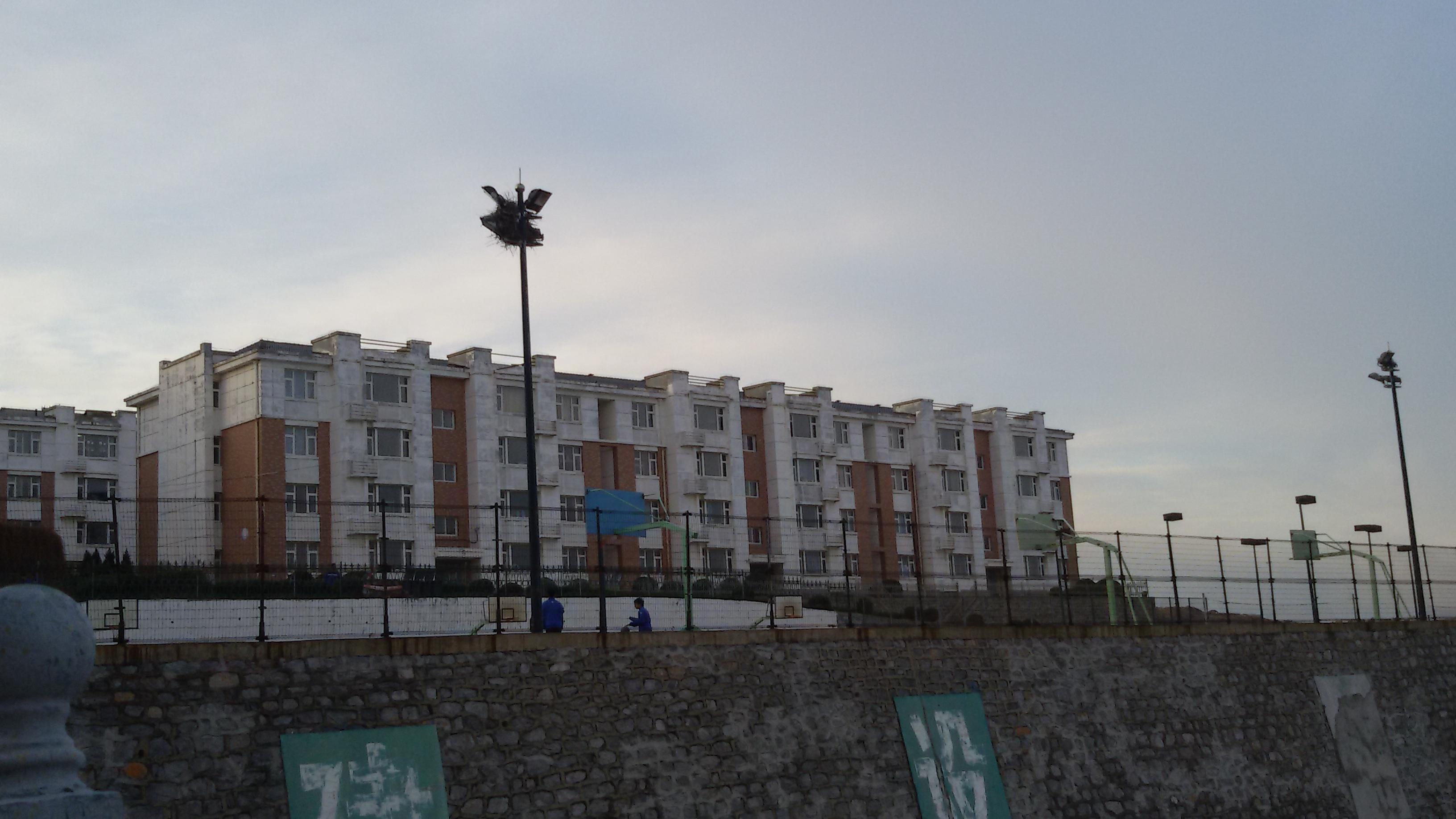 【前行-二号教学楼】楼前有小型篮球场和宽阔的平地便于学生集合。