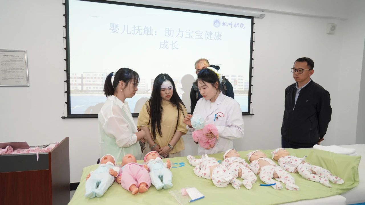 5月28日代表团一行来到枫叶职院大黑石校区,参观了继续教育与国际合作交流学院与护理产业学院等教学场所。代表团深入了解了我院在国际教育合作与产业学院建设方面的具体实践与成果,对我院在专业设置与人才培养模式上的创新给予了赞扬,并期待在未来的合作中能够进一步整合双方资源。